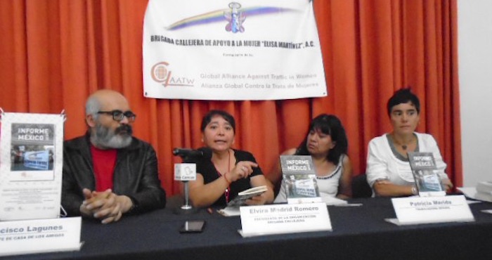 Chas Ávalrez, representante de GAATW; Francisco Lagunes, antropólogo presidente de Casa de los Amigos; Elvira Madrid Romero, presidenta de Brigada Callejera, y Patricia Merida, sexoservidora de la Merced, presentaron hoy el "Informe México 2018”, correspondiente a la investigación internacional de la GAATW sobre el trabajo sexual y trata de personas.