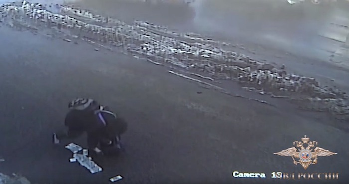 El criminal penetró en la oficina de una empresa y se llevó el dinero de la caja de seguridad. Durante su huida, una cámara de vigilancia grabó cómo perdió varios fajos de billetes en plena calle, pero solo recogió algunos.