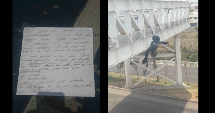 El muñeco fue rápidamente retirado por los uniformados, quienes confirmaron que incluso le fue colocado una hoja a manera de carta póstuma.