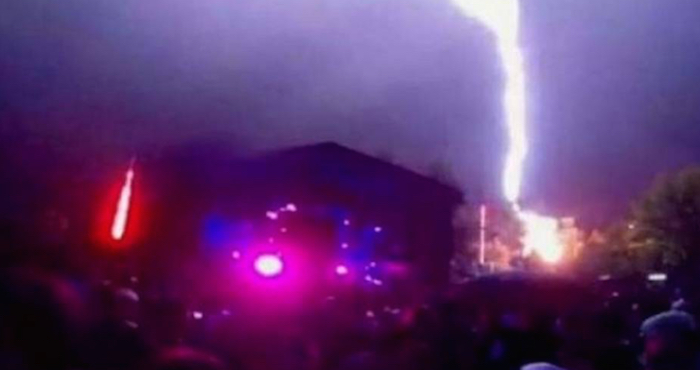El rayó, que cayó mientras tocaba el DJ Simon Patterson, no provocó heridos, de acuerdo con medios locales .