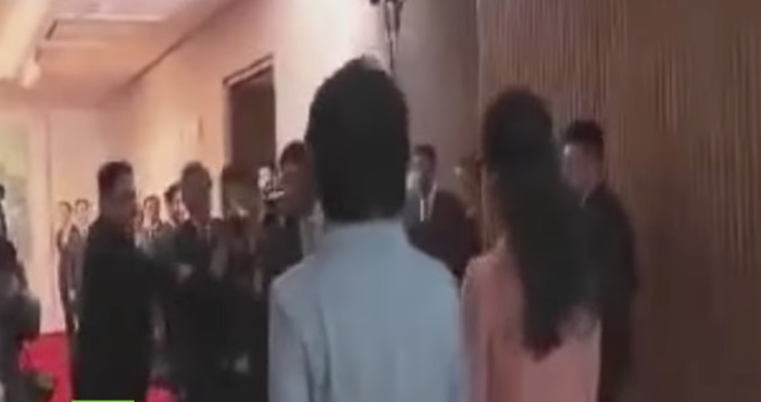 En las imágenes, se puede ver a las primeras damas caminando por un pasillo rodeadas por muchos reporteros gráficos. Dos fotógrafos intentan tomar unos fotos de frente de las mujeres y les bloquean el paso. Es entonces cuando Kim empuja a uno de ellos para que deje pasar a las mujeres.