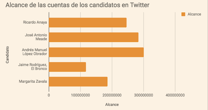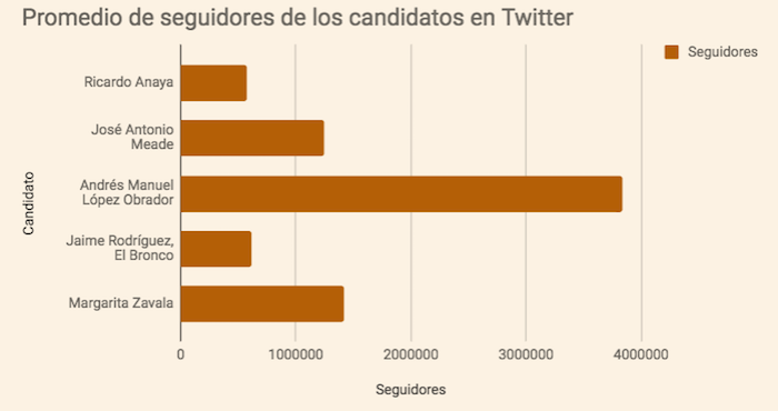 A esto se suma que Anaya despierta poco interés entre los usuarios para tuitear sobre él y que los candidatos independientes le superan en número de seguidores, aún cuando no emplean presupuesto del INE para posicionarse en esta red social. Esto a pesar de ser el candidato que se ubica en el segundo lugar de las encuestas, de acuerdo con el consolidado de estos ejercicios que realiza la empresa internacional de medios Bloomberg.