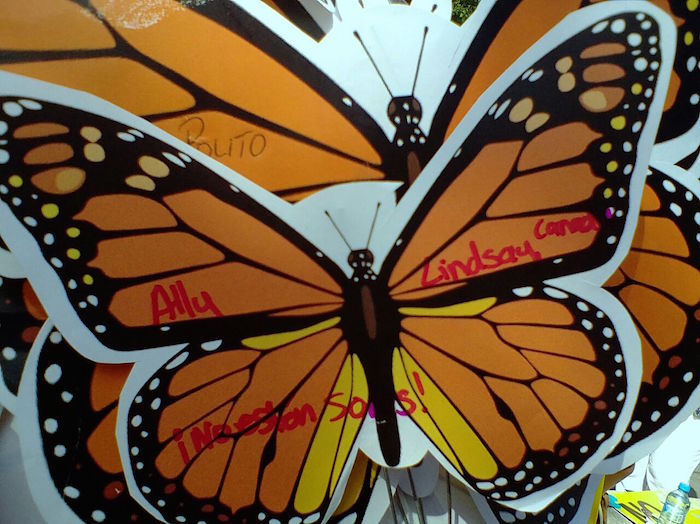Cientos de mariposas con mensajes de solidaridad fueron enviadas desde Canadá para las madres de personas desaparecidas que participan en la VII Marcha por la Dignidad.