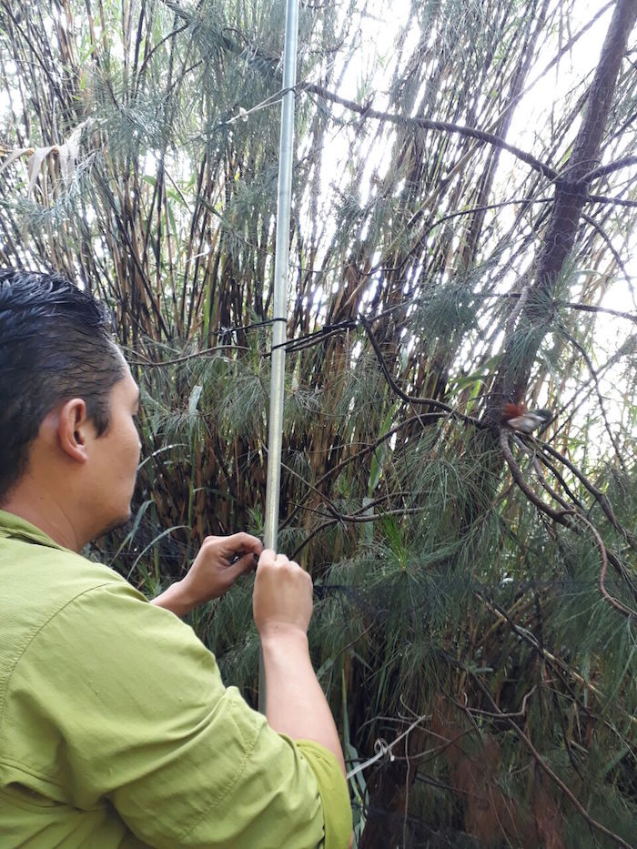 Se valen de 12 redes de nylon colocadas en un perímetro de seis hectáreas, a las que llegan las aves. Cuando un colibrí aterriza, en seguida asiste alguno de los estudiantes o especialistas y lo lleva cuidadosamente dentro de una bolsa de tela con ventilación a una mesa en la que es revisado: se le realizan mediciones en el pico, las alas, se determina si es hembra o macho, edad y estado de salud. Si es la primera vez que aparece en alguna de la trampas, se le coloca un diminuto anillo que cuenta con un número de identificación, lo cual les permite a los científicos estudiar su comportamiento en caso de que arribe nuevamente en la zona.;