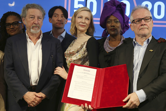 Los nueve integrantes del jurado presidido por Blanchett, que también incluyó a las estadounidenses Ava DuVernay y Kristen Stewart, se sentaron en primera fila para ver a Fremaux y otros líderes del festival firmar el compromiso para hacer que el proceso de selección sea más transparente y tomar otras medidas para mejorar la igualdad de género.