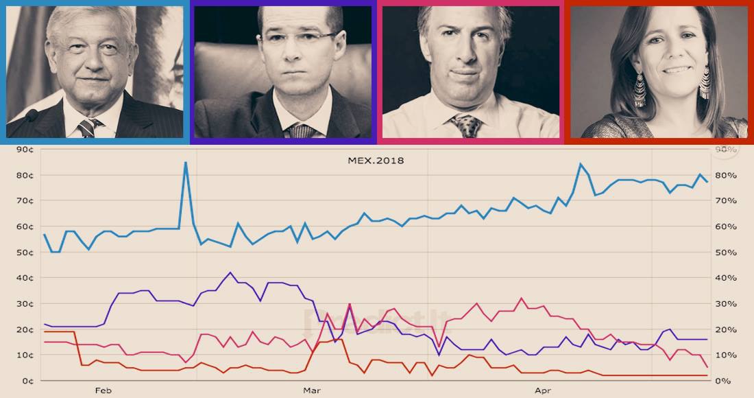 El 30 de abril de 2018, el candidato de Morena llegó a su máximo histórico: 48 por ciento en la intención de voto. Anaya estaba en 29.8 por ciento y Meade en 17.