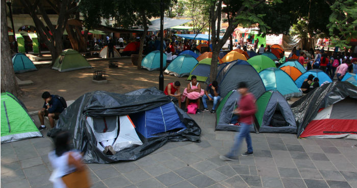 De acuerdo con información de medios nacionales y locales, un grupo de profesores instaló un plantón en el centro histórico de la ciudad de Oaxaca, ya que acusaron al Secretario de Gobernación, Alfonso Navarrete Prida, de mantener una política de cerrazón al negarse a reinstalar la mesa nacional de negociación.