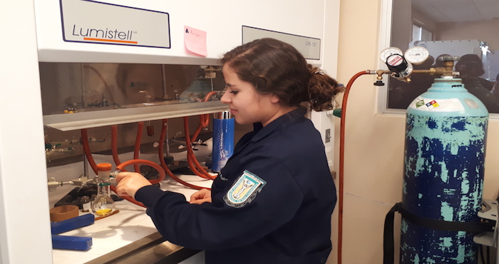 La doctora Ana Leticia Iglesias mencionó que en la UABC uno de los equipos más grandes de los que disponen es una caja seca, con capacidad de eliminar agua y oxígeno del medio para obtener reacciones que son altamente sensibles, así como manejar y almacenar reactivos o sustancias que son sensibles al aire, al oxígeno o ambos.