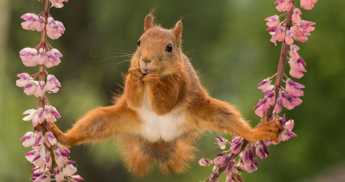 Todavía no esta cerrada la convocatoria, pero ya aparecen las primeras imágenes destacadas. Como la Comedy Wildlife Photograph remite a eldiario.es, entre ellas se encuentra la de una ardilla que demuestra su elasticidad como si fuera el mismísimo Jean-Claude Van Damme. La diferencia es que esta no mantiene el equilibrio entre camiones, sino entre dos flores.