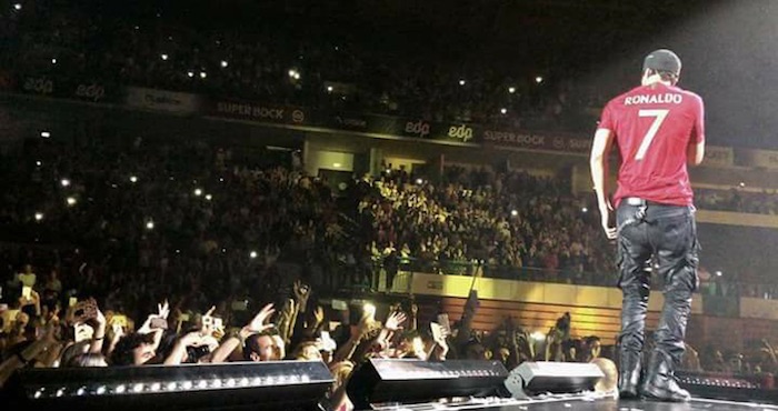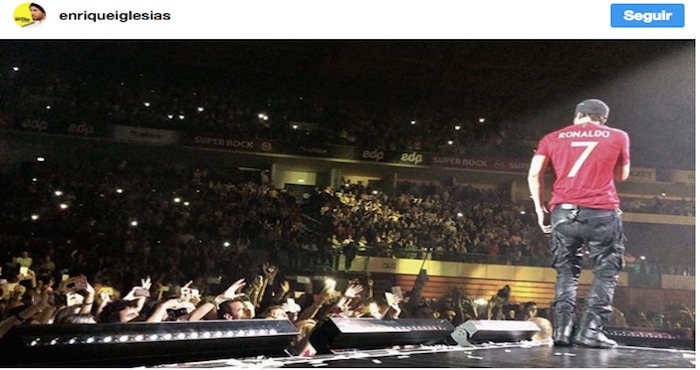Hoy, día de la resaca de este concierto, Enrique Iglesias ha querido agradecer a todo Portugal el cariño que ha recibido en esta parada de su gira y lo ha hecho a través de Instagram eligiendo para ello esta fotografía de su espectáculo en la que lleva la camiseta de Cristiano Ronaldo.