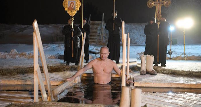 El Presidente ruso participó en la festividad del Bautismo del Señor en el lago Seliguer (en el noroeste de Rusia). El mandatario, que vestía un tradicional abrigo de piel de oveja, se sumergió en sus gélidas aguas.