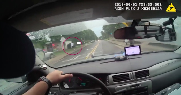 En el video se ve como el oficial Saulters condujo sobre un separador y explotó la llanta de su vehículo y al no poder bloquear a Patmon decide acelerar y arroyarlo.