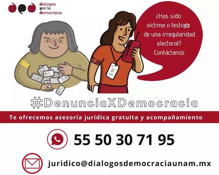 Usuarios en redes sociales se han organizado para denunciar las llamadas telefónicas. A través de la cuenta @DialogosUNAM, iniciativa de observación electoral de la Universidad Nacional Autónoma de México (UNAM), se pidió a los usuarios que utilizaran el hashtag #DenunciaXDemocracia para compartir grabaciones de estas llamadas.