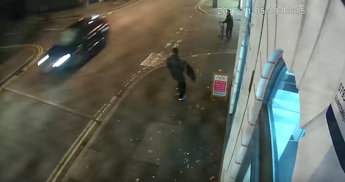 En las imágenes se aprecia el momento en que un Peugeot de tono azul pasa un semáforo en ámbar a toda velocidad. Tras chocar con otro vehículo que realizaba un giro, el automóvil pierde el control y arrolla a tres jóvenes, lanzándolos por los aires varios metros.