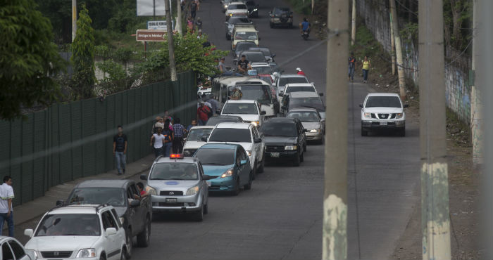Muchos caminaban a un lado de la autopista porque el tránsito de vehículos se había quedado parado en la única carretera para salir.