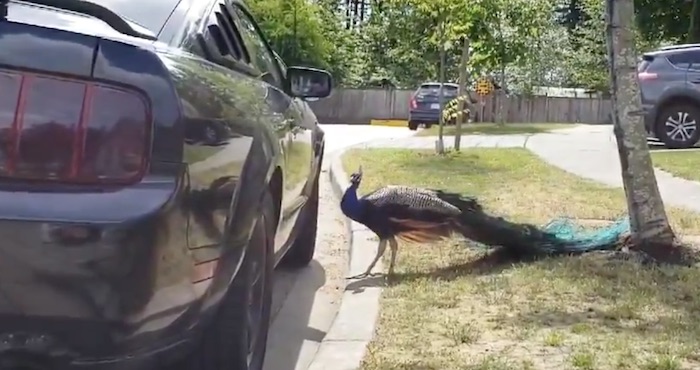 There's a peacock problem in this #Surrey neighborhood! The birds catch themselves in the reflection of vehicles, and end up scratching the cars. Neighbours say they're also extremely loud. City officials say they're speaking with experts to determine next steps. pic.twitter.com/nTAOZr4vJ8