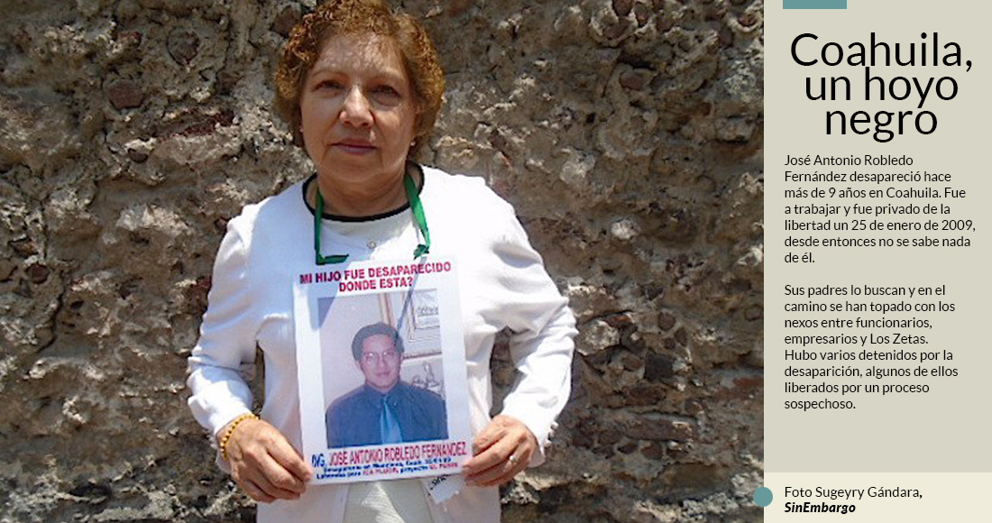 Ciudad de México, 9 de junio (SinEmbargo).- "Yo en su momento pensé que lo iba a recuperar en días… y ya han pasado nueve largos años”, dice María Guadalupe Fernández Martínez, madre del ingeniero José Antonio Robledo Fernández, plagiado la tarde del 25 de enero de 2009 en Coahuila mientras hablaba por teléfono con su novia.