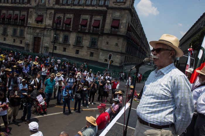 Al llegar al Zócalo capitalino, los asistentes se conglomeraron frente a las oficinas del gobierno de la Ciudad de México, desde ahí el ex líder del movimiento del 68 Félix Hernández Gamundi denunció a los presidenciables que se pronuncien sobre el tema porque lamentó que a 47 años del "Halconazo" y a 50 de la masacre perpetuada en Tlatelolco "la impunidad campea en nuestro país".