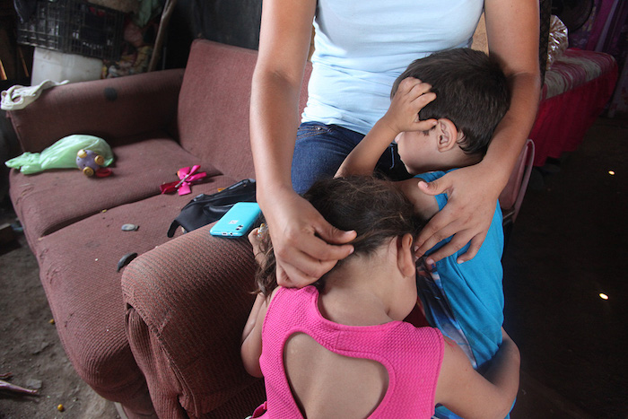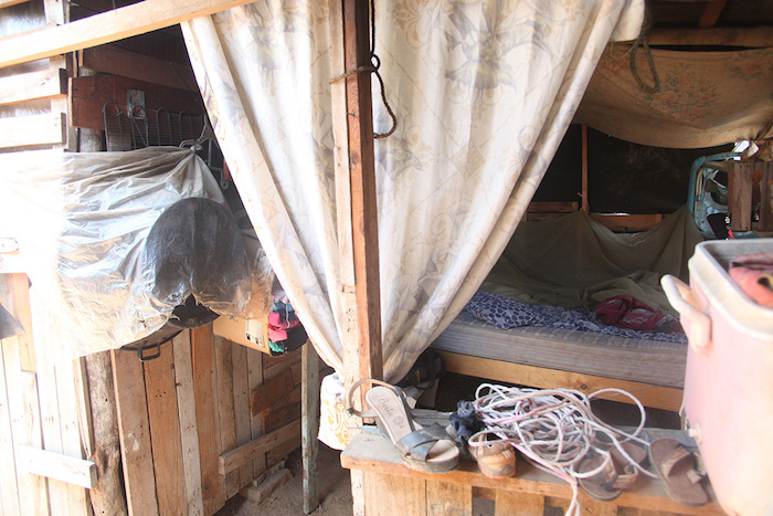 Sobre el piso de tierra, se levantan paredes de madera que delimitan al menos dos cuartos. Allí viven tres familias. María Evangelina, su hija y esposo; su madre de 77 años y su sobrina con sus hijas. Pero la solidaridad siempre da lugar para una más. Con los recientes hechos violentos en que asesinaron a cuatro personas en Pánuco, han recibido a otra familia, una viuda con sus niños.