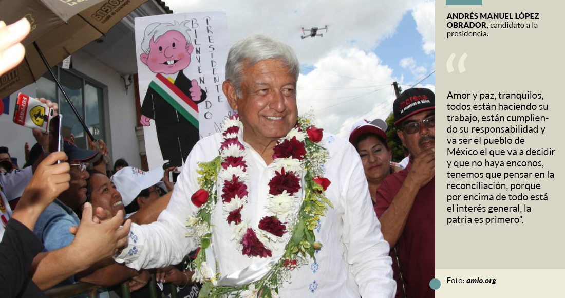 "Amor y paz, tranquilos. Todos están haciendo su trabajo, están cumpliendo su responsabilidad y va ser el pueblo de México el que va a decidir y que no haya enconos. Tenemos que pensar en la reconciliación, porque por encima de todo está el interés general, la Patria es primero”, dijo el tabasqueño luego de un mitin en Las Margaritas, Chiapas.