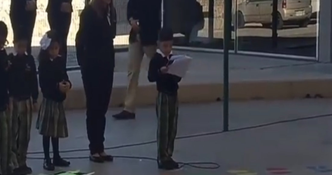 Ya otro niño había protagonizado un momento similar, cuando al final de una ceremonia escolar en una escuela primaria, el menor dice: "Y recuerden, papás, este 1 de julio voten por López Obrador”.