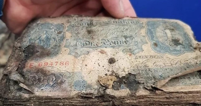 El propietario de la tienda, Russ Davis, estimó que había unos treinta paquetes, todos ellos formados por billetes de 1 y 5 libras, de un tono azul, que fue el empleado por la moneda de emergencia en tiempo de guerra emitida por primera vez por el Banco de Inglaterra en 1940. Los billetes estaban pegados entre sí, cubiertos de tierra y en bastante mal estado.