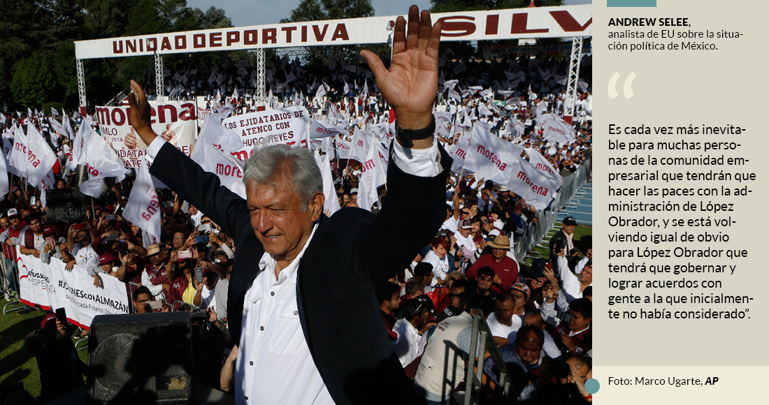 “Es cada vez más inevitable para muchas personas de la comunidad empresarial que tendrán que hacer las paces con la administración de López Obrador, y se está volviendo igual de obvio para López Obrador que tendrá que gobernar y lograr acuerdos con gente a la que inicialmente no había considerado”, dijo a The Associated Press Andrew Selee, un analista estadounidense que por años ha seguido la situación política en México.