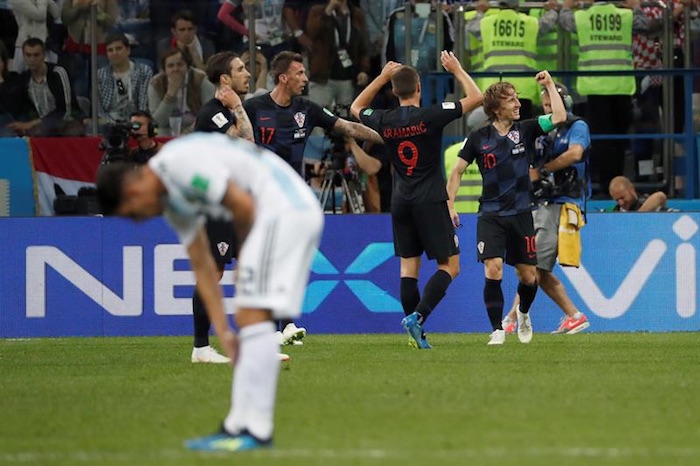 Rabic remató de volea un despeje infame del portero Caballero en el minuto 52, Luca Modric marcó un golazo pegado al poste izquierdo en el 80 para su segundo gol del certamen, y Rakikic, en el 90+1, tras un contragolpe, dieron forma a la goleada a favor de los Balcánicos por 3-0, en partido de la Jornada 2 del Grupo D, disputado en el Nizhni Nóvgorod, que deja a los argentinos "heridos de muerte".