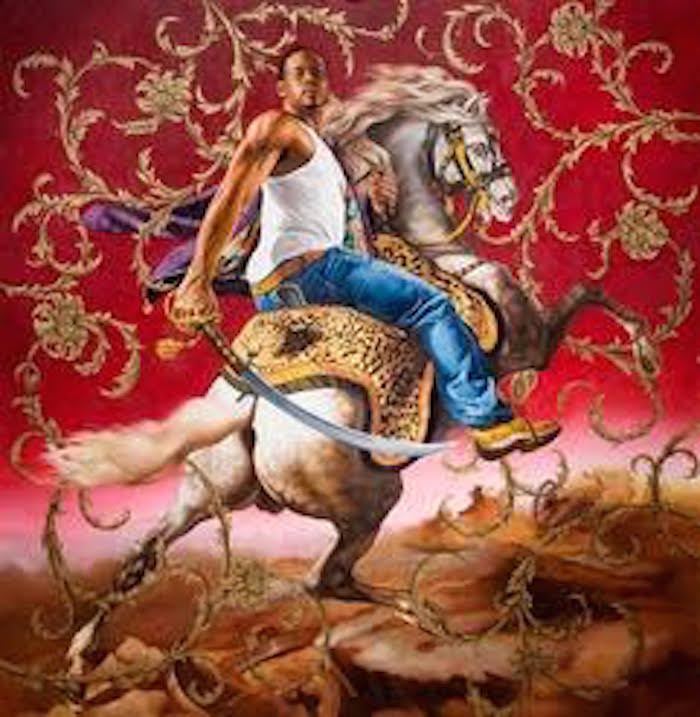 En otra escena, desde la base de la escalera, una serie de cuerpos, casi desnudos, se rinden ante la pareja. El vestuario es espectacular y contrasta con los blancos y sobrios ropajes de la Victoria de Samotracia. La letra de la canción habla del dinero, es un himno al poder. En una sucesión de imágenes extraordinarias, el grupo de bailarinas simulan ser esculturas vivientes. Poco después el artesonado del techo nos muestra a Virgo en el horóscopo barroco. La pareja vuelve a aparecer, esta vez envueltos en telas tipo Versace, una estampa neo barroca que compite con aquellos retratos estrafalarios de los poderosos nobles, incluso con la dolorosa imagen de la Pietà de Fiorentino. ¿Acaso Beyoncé y Jay-Z son la nueva institución reinante? El video nos muestra una y otra vez a la pareja entronizada presidiendo los majestuosos salones. La apropiación del espacio, la simulación de los roles. Todo está estudiado. Una especie de tablau vivant, ¡bien!, el efecto se ha logrado. Tal vez la escena más espectacular, Beyoncé frente a la Consagración de Napoleón, obra de Jacques Louis David: un grupo de bailarinas son espejo que se reproduce al infinito, imagen del vacío. Evocan al Baño Turco de Jean-Auguste Ingres, qué lástima que no sale. Los esposos raperos, icono del poder de la raza negra, frente a la Gran Esfinge, icono de la eternidad egipcia. Madame Recamiér, casada con un acaudalado banquero, la socialité que solía acoger a los artistas en sus afamados salones. David la pintó en 1800. Las bailarinas parecen insuflarle el aliento, perdemos noción de quién está vivo y quién es solo un cuadro. La Venus del Milo debe su poder a la mutilación, la convierte en una anomalía de la historia del arte. Su belleza estriba en la imperfección. Ahí está, cadera con cadera al lado de Beyoncé que se mide contra el mito. Poco a poco las bandas de raperos se apoderan del lugar. No le faltan al respeto pero lo ignoran. Es una rebelión como las de siempre, ¡no al pasado, vengan las imágenes del porvenir! Beyoncé y su marido Jay-Z no son los primeros en reivindicar a las minorías raciales en el arte. El video transita por el camino que ya ha sido recorrido por grandes autores, aunque no sean de todos conocidos: Kara Walker, Mickalene Thomas pero sobre todo Kehinde Wiley, uno de los primeros artistas que decidieron cobrarse el derecho de estelarizar la negritud en las obras artísticas clásicas y que por cierto, acaba de terminar el retrato del presidente Obama.