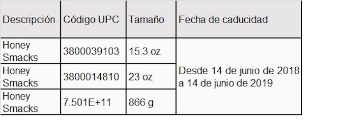 Los cereales Honey Smacks son comercializados en Estados Unidos, Costa Rica, México y varios países del Caribe, y sus autoridades ya han sido también notificadas.