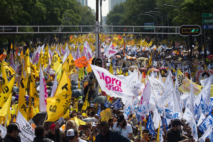 Antes de las 11:00 horas de este domingo, adultos, jóvenes y mayores; simpatizantes, militantes y arrimados comenzaron a tomar las calles aledañas al Ángel de la Independencia. El azul, el amarillo y el naranja tiñeron entonces la icónica avenida de la Ciudad de México.