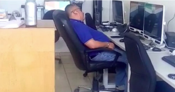 Estudiantes que acuden al inmueble denunciaron al funcionario de brindar un deficiente servicio, ya que cuando no está en su siesta, está viendo su serie favorita.