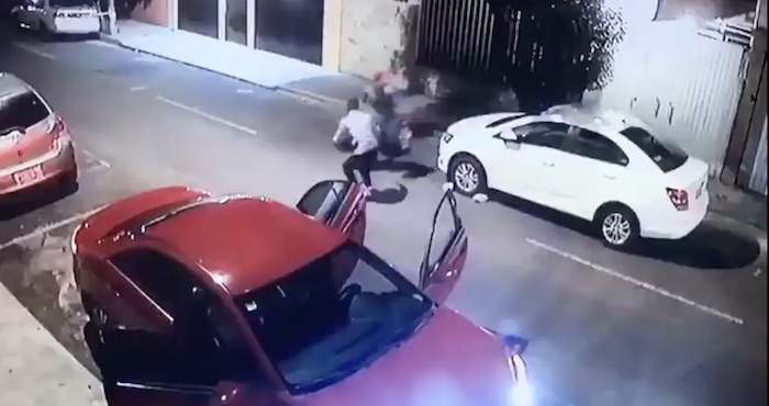 Luego llevan los neumáticos hasta un auto rojo que permanece encendido durante todo el atraco, mismo en el que huyen sin que hasta el momento hayan sido detenidos.