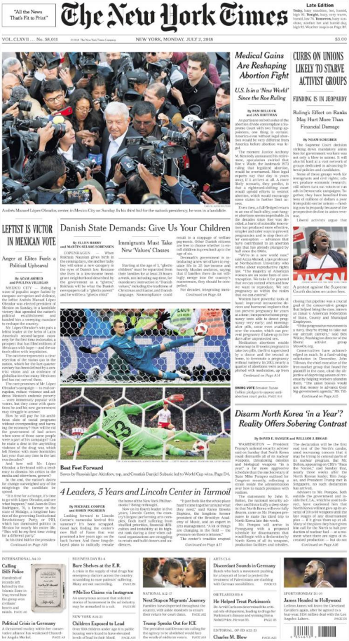 Lunes 2, 9:00 am | The New York Times: La izquierda es victoriosa en el voto mexicano