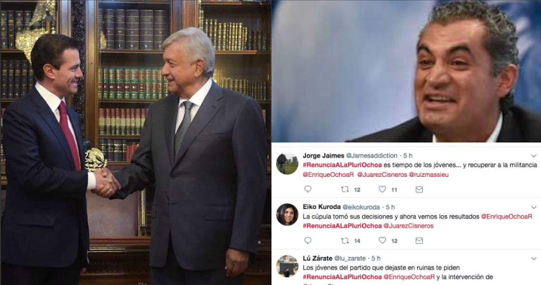 Mientras la tendencia "Palacio Nacional" se posicionó a nivel global al medio día de este martes, otra tendencia arribó a Twitter. Con la etiqueta #RenunciaALaPluriOchoa, un grupo de simpatizantes priistas atribuyó a Enrique Ochoa Reza la derrota de José Antonio Meade el pasado 1 de julio, y algunos de ellos le exigieron que renunciara al cargo de Diputado plurinominal, además de su salida del partido.