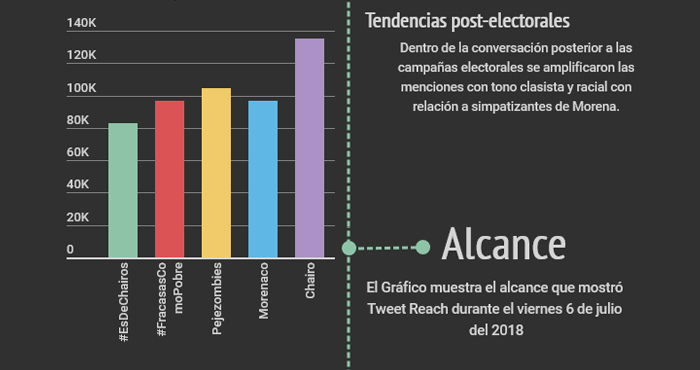 #MetaDatos | Con el triunfo de Andrés Manuel López Obrador, candidato a la Presidencia con mayoría, en las redes sociales se amplificó el discurso clasista y racista de aquellos que desde el inicio de las campañas mostraron una marcada animadversión por AMLO y su partido Movimiento Regeneración Nacional (Morena).