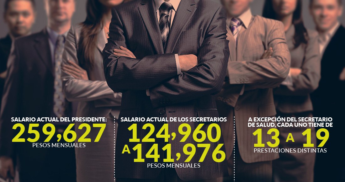 Por su parte, los titulares de las secretarías de Estado tienen aprobado un sueldo base mensual de 34 mil 967 pesos, que cuenta con compensaciones de 183 mil 619, lo que suman un incremento salarial de 17 mil 298.