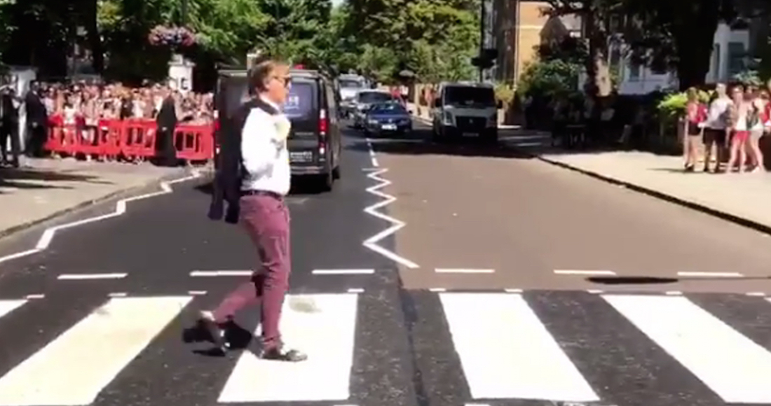 Este lunes, Paul McCartney daría un concierto íntimo, otorgado a un grupo de afortunados fans en los estudios Abbey Road, por lo que aprovechó para revivir la icónica imagen capturada aquel 8 de agosto de 1969 por el fotógrafo Iain McMillan.