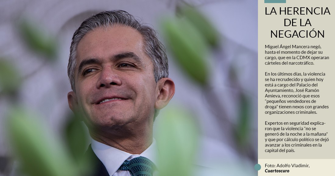 El problema de la inseguridad que aqueja a los capitalinos empeoró durante los últimos años, mientras el ex Jefe de Gobierno Miguel Ángel Mancera Espinosa negó durante su administración a la operación de cárteles de la droga en la capital del país, a pesar de que la Administración para el Control de Drogas (DEA, por sus siglas en inglés) reportó desde 2015 la presencia de al menos cuatro de ellos.