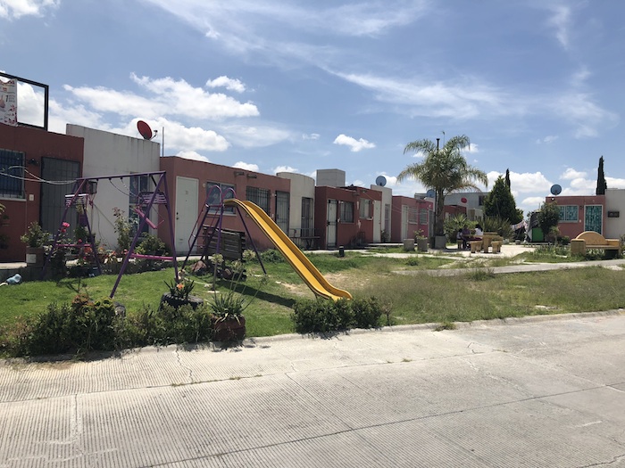 Una habitante del fraccionamiento San Cristóbal en Mineral de Reforma, Hidalgo, comentó que los vecinos "se quejan, pero no quieren pagar vigilancia en las casetas". Su hija contó que en una colonia cercana hay balazos. En contraste, más arriba del municipio, ofrecen fraccionamientos de casas arriba del millón de pesos, el doble del precio de una de interés social. "Vive con tranquilidad, vive con calidad", ofrecen las inmobiliarias que siguen construyendo.