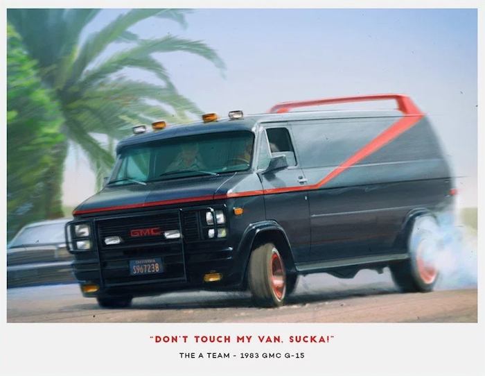 A primera vista, el GMC G-15 1983 de A-Team, que se usó para el trabajo de mercenarios mientras son buscados por un 'crimen que no cometieron', no se ve muy diferente de una camioneta normal. Pero ha tenido más de un par de trucos bajo sus mangas, alojando a veces una mini imprenta, un dispositivo de audio vigilancia y un casillero. La carrocería negra y gris metalizada con una franja roja se ha convertido en una imagen perdurable de este programa de televisión de culto de los años 80. ¿Y a quien lo lastime? Bueno, tendrán que lidiar con B.A.
