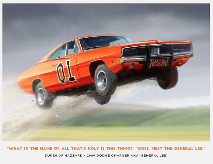Uno de los clásicos de la televisión de los años setenta, "General Lee", el Dodge Charger naranja brillante de los Duke Boys de 1969, fue central en la historia de Dukes of Hazzard. Aunque el automóvil tenía sus distintivas marcas "General Lee" y "01", no era solo un automóvil, sino que tenía un par de suplentes. Varios extraordinarios 309 Dodge Charger fueron utilizados para el espectáculo. Debido a esto, los productores pasaron de tener los autos pintados a mano a usar el método mucho más rápido de las etiquetas de vinilo para asegurar que cada uno fuera idéntico.