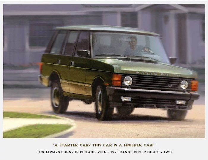 El Range Rover de Dennis Reynolds, un LWB del condado RR de 1993, no es el más afortunado de los vehículos. Desde causar un choque hasta correr sobre otro copropietario de Paddy's Pub Charlie, el programa ve a Dennis y su auto involucrarse en una serie de escapadas. El colmo es cuando Dennis lo conduce a un lago después de perderse una fiesta en un barco y decide venderlo, enfureciéndose cada vez más cuando los posibles compradores señalan que está atascado bajo el agua.