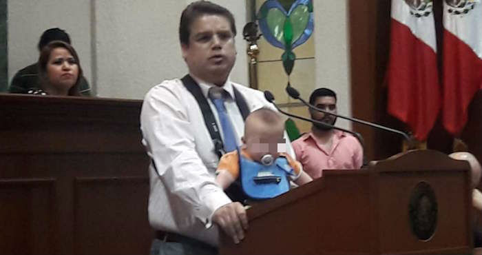 Un Diputado panista de Sinaloa sube a la Tribuna con su bebé para condenar el aborto