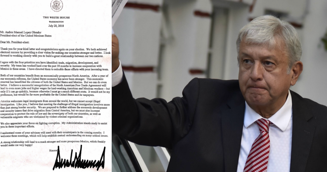 Trump responde carta de AMLO y lo apoya al 100%; quiere TLCAN ya, y el jueves se reanudan pláticas