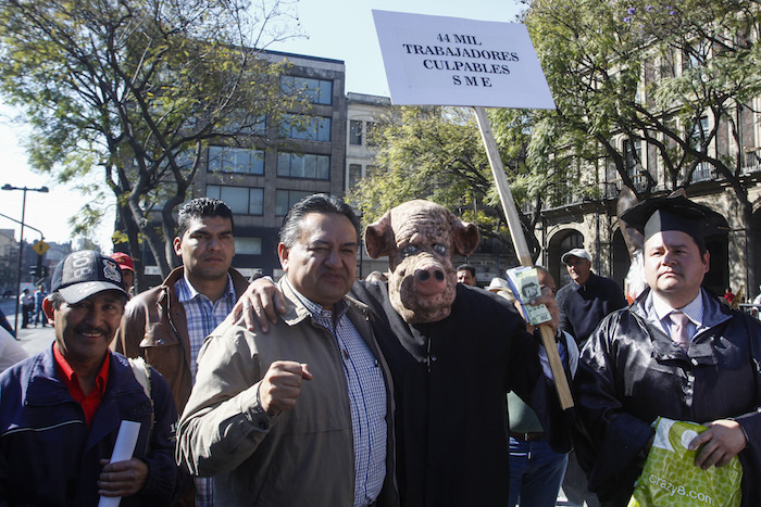 Un grupo disidente del SME se manifestó en la casa de transición de López Obrador para pedirle que no proteja a Esparza, a quien acusan de haberse quedado con dinero de la liquidación tras la extinción de la Compañía Luz y Fuerza en 2010 por supuesta ineficiencia operativa y financiera.