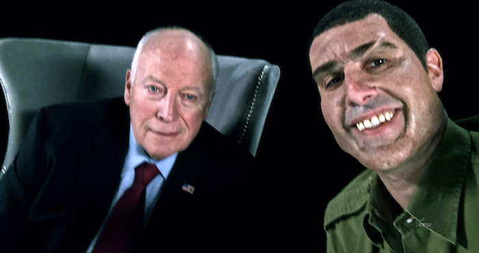 Con sus botas negras, ropa y sudadera tipo militar con letras hebreas escritas al revés, el Morad de Baron Cohen tiene una cicatriz en la cara, cejas juntas muy pobladas y habla un inglés malo con acento fuerte salpicado de expresiones en hebreo y con una cadencia agitada, típica de los secos militares israelíes. Aunque se supone que es un coronel, a veces se refiere a sí mismo como general, mayor o capitán; en otras ocasiones dice que rindió servicio en la agencia de espionaje Mossad. Con Cheney, este supuesto militar retirado se presentó con su uniforme verde olivo completo y una insignia de sargento. Nada de esto pareció ser una alarma para el ex secretario de defensa estadounidense.