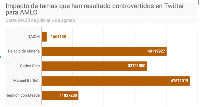 Con el inicio de las mesas de diálogo entre las víctimas de la violencia en el país –que son parte de una de las promesas de campaña del tabasqueño– se interrumpió la tendencia negativa que se ha mantenido en estas plataformas de comunicación contra AMLO desde que dio a conocer la designación de Manuel Bartlett Díaz como director de la Comisión Federal de Electricidad (CFE), y luego de la reunión que sostuvo con José Antonio Meade Kuribreña, su adversario en la pasada campaña y a quien calificó como una persona "decente y honorable", además de los elogios con los que llenó al empresario Carlos Slim Helú en su encuentro con ingenieros en el Palacio de Minería, en la Ciudad de México.
