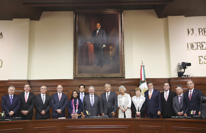 Los ministros de la #SupremaCorte, encabezados por el Ministro Presidente Luis María Aguilar Morales, tuvieron un encuentro en el Edificio Sede de la @SCJN con el presidente electo @lopezobrador_ en el marco de un diálogo permanente con respeto a la independencia judicial. pic.twitter.com/I1RIi1evgp