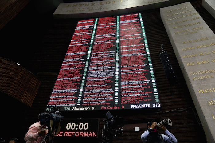 El Pleno desechó la iniciativa de Rocío Nahle García, quien será la futura Secretaria de Energía, que buscaba legislar el incremento del contenido nacional en los contratos petroleros en al menos 85 por ciento y con un mínimo de 90 por ciento de mano de obra nacional; y otra que pretendía que los mexicanos votaran consultas populares sobre temas de trascendencia nacional, excluyendo los ingresos y gastos del estado, la seguridad nacional y la organización, funcionamiento y disciplina de la Fuerza Armada permanente.